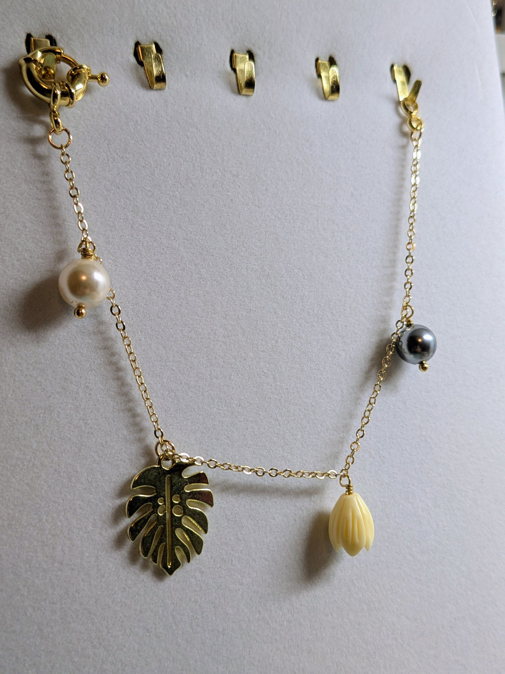 Monstera & Pikake Pearl Charm Bracelet